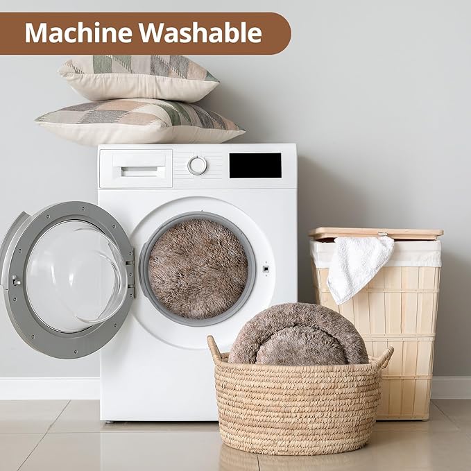 - Effortless Care & Home Decor Match: Machine Washable for easy care. Simply toss the entire bed into the washer (Gentle Cycle) to keep it fresh. Designed in premium neutral hues, this donut pet bed blends seamlessly with any room, elevating your living space while offering a hygienic spot for your pet