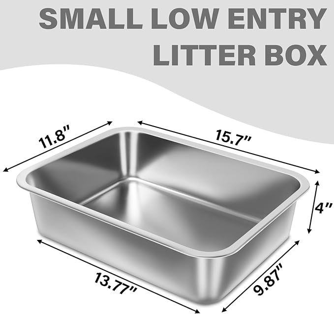Small Stainless Steel Litter Box 2 Pack,15.7"x11.8"x4" Small Litter Box for Kittens, Easy Clean Non Stick Easy Entry No Smell Metal Litterbox for Kitty/Rabbits