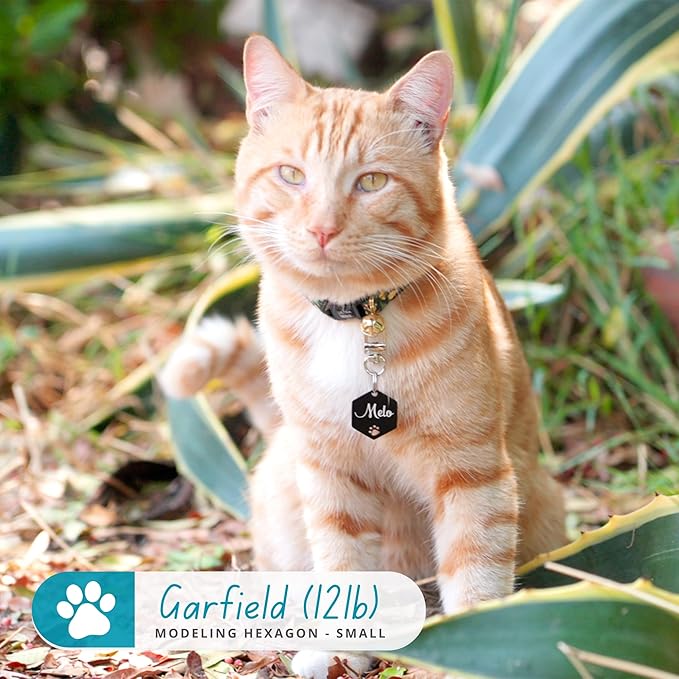 Ultra Joys Dog Tags Personalized for Pets - Hollow Paw Custom Pet ID Tag - Engraved Dog Tag for Small, Large Dogs - Large Hexagon in Black
