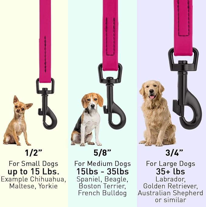 - Made in the USA from the highest quality materials, our Biothane Dog Leash comes in your choice of 26 stylish colors; 2 feet, 4 feet and 6 feet lengths; and 3 widths, ensuring that there is a suitable lead for any dog breed.