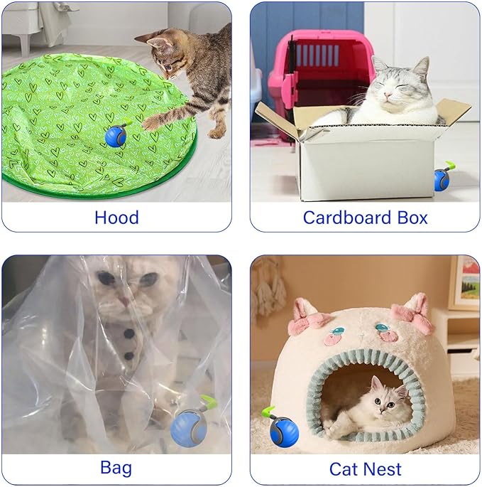 - Adjustable Speed: Short press the on/off key after powering on to switch the speed. In normal mode, light green is slow, dark green is fast. In smart mode, light blue is slow and dark blue is fast. Two different speeds to meet the needs of different personality cats, so that cats quickly fall in love with this interactive toy ball. It is recommended to choose the slow speed when using for the first time, so that kittens can slowly get used to this cat toy ball.
