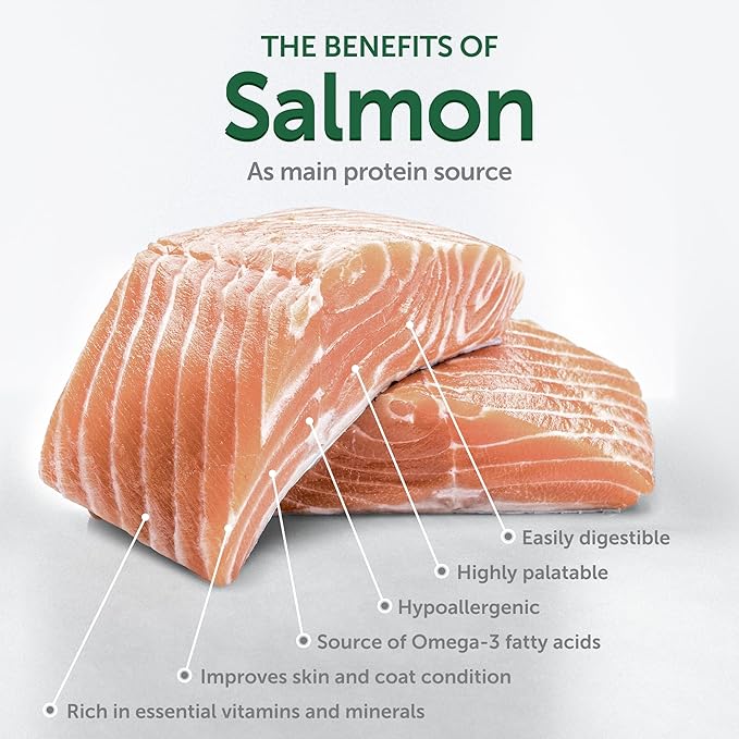 - Premium Dog Food Ingredient - Our salmon dog food is a pioneer in healthy dry dog food solutions. Its unique ingredient Microzeogen removes heavy metals from your dogs' bodies, supports healthy skin and coat & strengthens the immune system. This natural mineral actively stimulates your fair-coated dog's microflora and nutrient absorption.