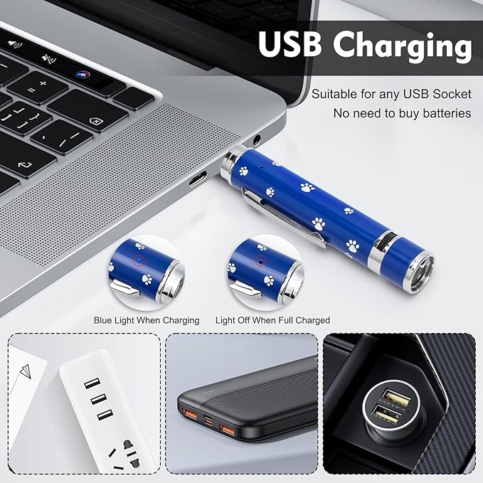 - Multi-Mode Interactive Toy: The cat toy has three modes: red, purple, and white. The red mode is suitable for playing and chasing with your pet, training your cat or dog's reaction and agility during the game. The violet mode is not only for detecting counterfeit bills, but also suitable for Observing your pet's health status. The white mode designed for emergency lighting at night is convenient for users to use it safely even in dark environment