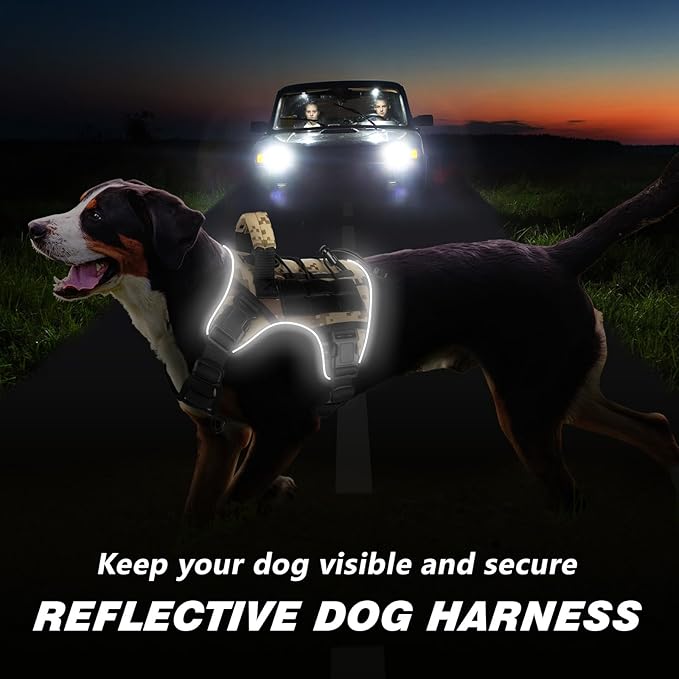 WINGOIN Tactical Dog Harness for Medium Dogs, Heavy Duty No Pull Dog Harness with Handle, Adjustable Reflective Military K9 Pet Vest for Pitbull, Female, Male, Walking, Hunting, Camo (M)