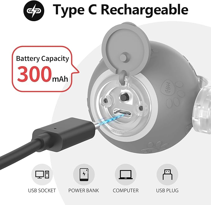 - USB Rechargeable: This interactive cat toy has a built-in rechargeable battery, and the charging port is located inside the switch button cover. Open the cover and easily charge it using the included USB cable.