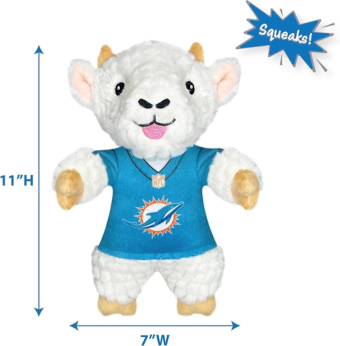 Pets First NFL Miami Dolphins Goat Plush Toy for Dogs and Cats with Squeaker, Wearing a Team Jersey! Fun & Sporty Goat Shaped Dog Chew Toy, Interactive Pet Toy