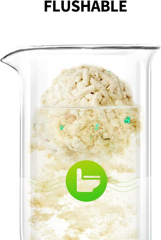 - FOOD-GRADE INGREDIENTS AND WATER FLUSHABLE: Made with all-natural ingredients, our Clump+ cat litter is free of additives, ensuring a safe potty journey for your feline companions. And it’s water dissolvable and flushable, you can directly pour the used cat litter into the toilet (Note: Do not flush too many clumps at one time to prevent clogging the toilet). Unscented clumping cat litter is ideal for multi-cat households.