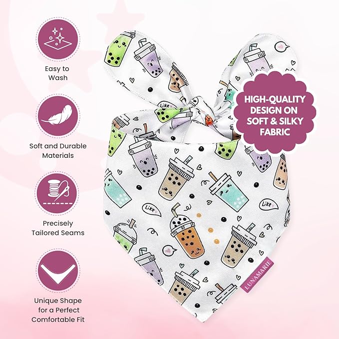 LunaMarie - Luxury Pet Birthday Bandanas -Premium & Silky Poly Fabric | 100% Handmade | Custom Shape Dual Layered (Boba, X-Small)