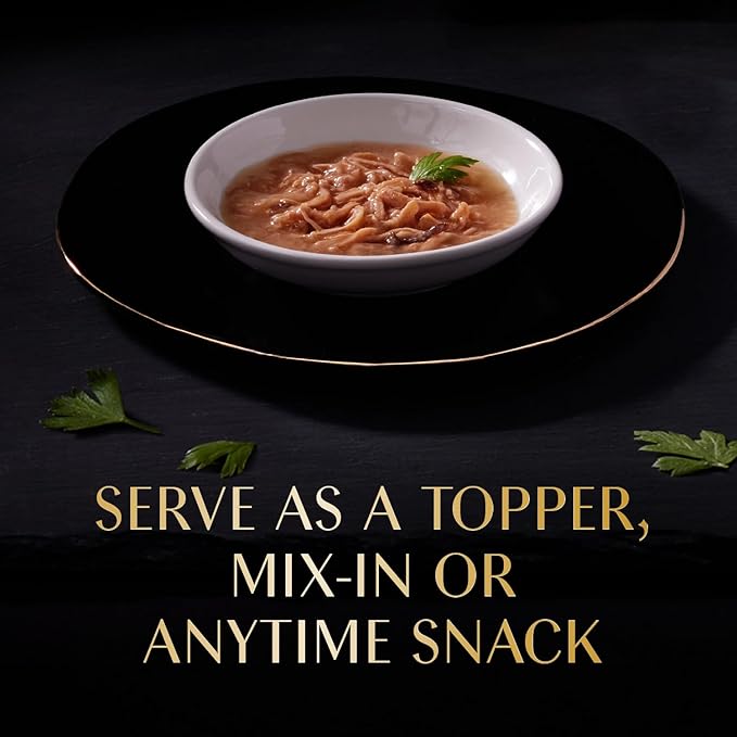 - Gourmet Experience: Your cat will enjoy tender pieces of chicken and tuna served in a delicate broth over their cat food or as a stand-alone snack.