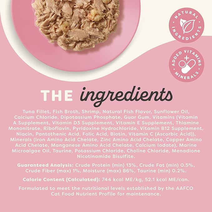 Applaws Vitality Wet Cat Food in Broth, Natural Cat Food with Added Vitamins & Minerals, Grain and Carrageenan Free, Tuna Fillet & Shrimp in Broth (24 Count, 2.47 oz Cans)