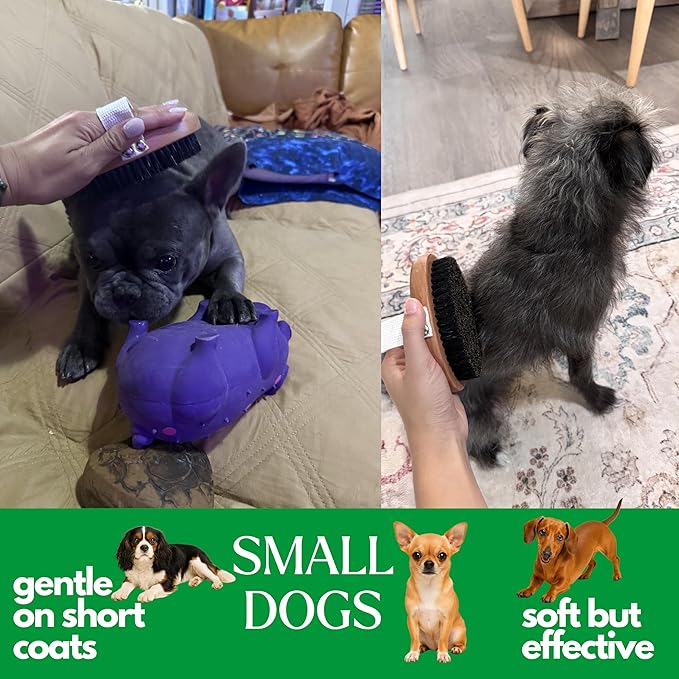 - Gentle Boar Bristles for Effortless Deshedding: Crafted for short-haired dogs (and cats!), this brush uses ultra-soft boar bristles to gently lift loose hair and dirt without irritating sensitive skin. The natural bristles distribute skin oils for a shiny, healthy coat while reducing shedding. Perfect for daily grooming to keep pets sleek and homes fur-free.