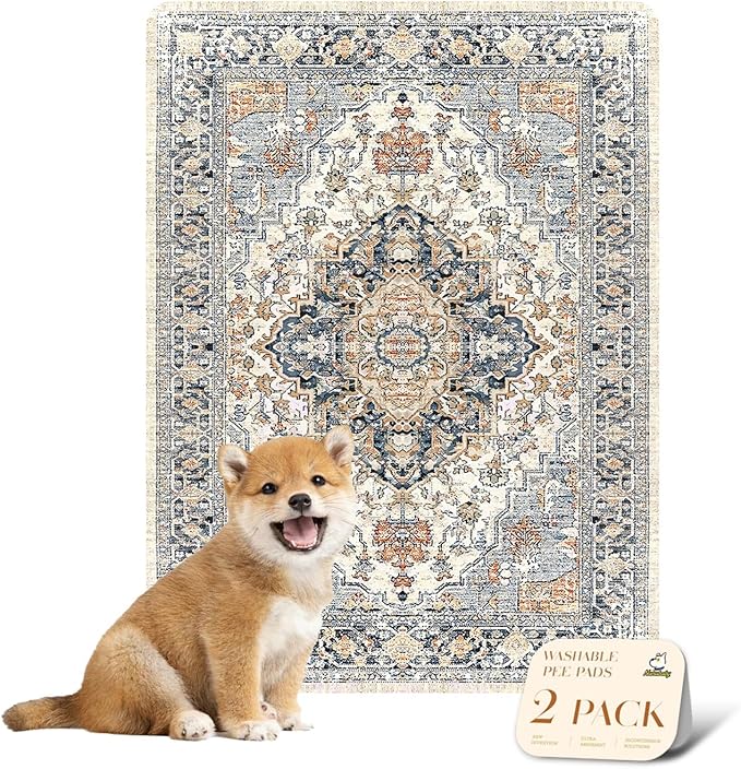 nunubaby Reusable Potty Pads for Dogs for Crates and Floors. Washable Pee Pads for Dogs, Stylish, Non-Slip and Leak-Proof Pee Pads. (Beige/Multi, 18" x24")