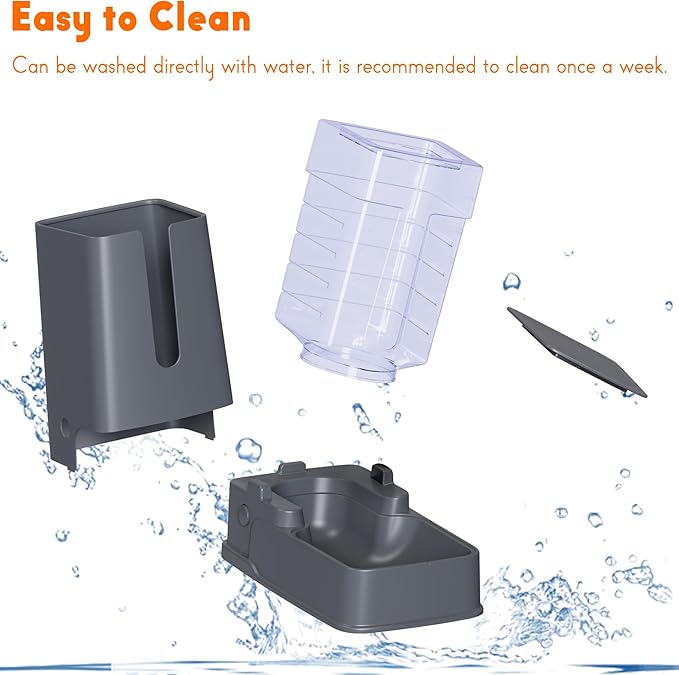 - Automatic Refills Food And Water With Gravity Cat Feeders: Gravity cat dog feeder with self-gravity feeding design for this cats feeder and water dispenser, no electricity required and can be used anywhere. Great choice if you need to go to work or travel, do not need to worry about your pets being hungry or thirsty