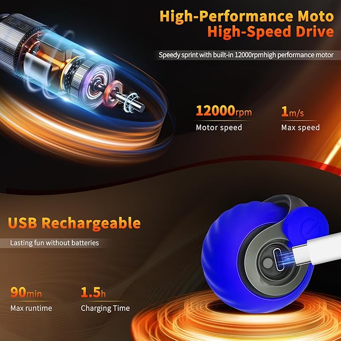 - Adjustable Speed Settings – Easily switch between low speed (light blue) for gentle play and high speed (dark blue) for energetic chasers. This makes it suitable for kittens and adult cats of all activity levels.