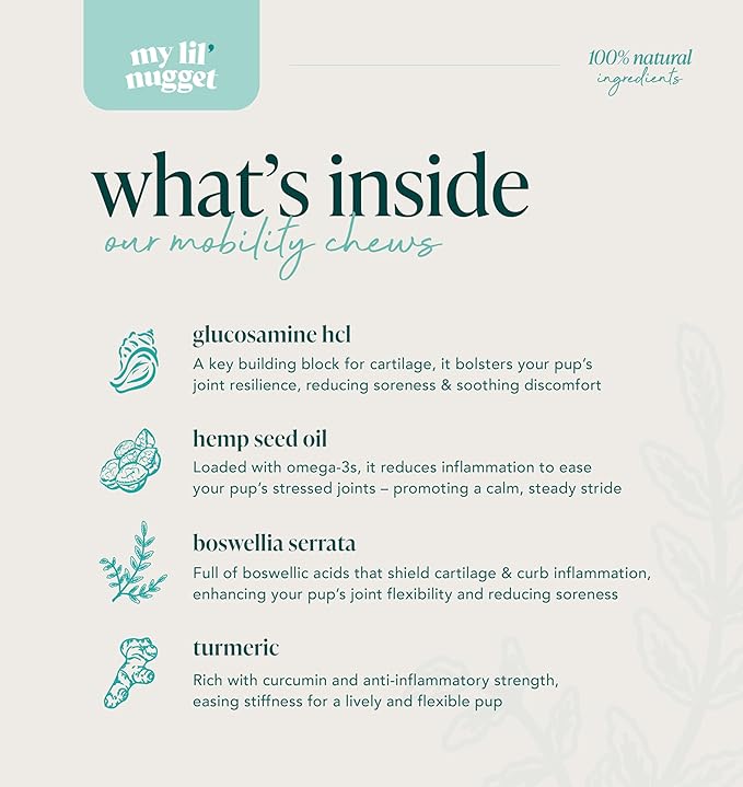 My Lil’ Nugget – Vet-Approved Hip and Joint Support for Dogs | All-Natural Dog Arthritis & Joint Pain Relief | Glucosamine, Chondroitin & Hemp | All-Ages – Senior Dog to Puppy | 90 Bacon Flavor Chews