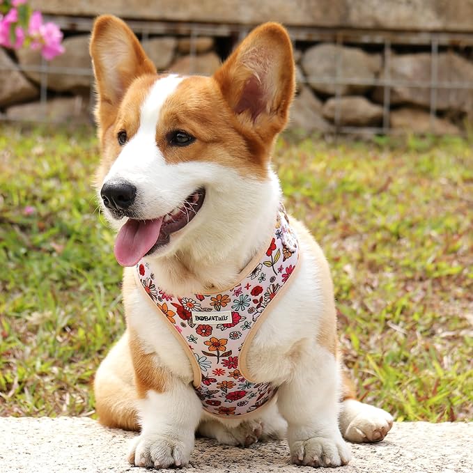 Flower Printed Dog Harness with D-Ring Leash Clip Set,Adjustable Soft Padded and Cotton Fabric Pet Vest for Medium and Small Dogs (Navajo White, Small)