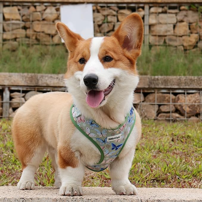 Butterfly Printed Dog Harness with D-Ring Leash Clip Set,Adjustable Soft Padded and Cotton Fabric Pet Vest for Medium and Small Dogs (Green, Extra Small)