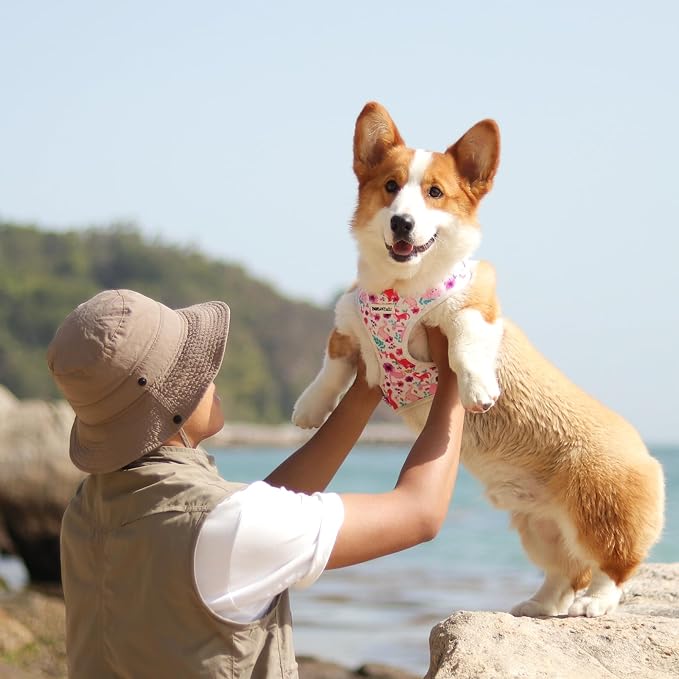 - Lightweight and Comfortable - Your dog will enjoy the daily walk in this comfortable dog harness! Made of comfortable cotton and soft padded with soft cushion to protect your dog's skin.Breathable air mesh keeps your dog cool during outdoor activities.Lightweight design to make sure your dogs' comfort.
