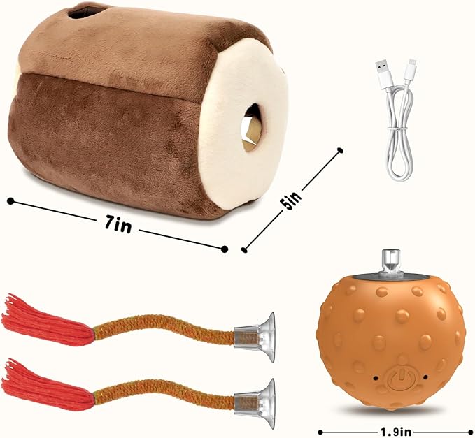 - [ Two ways to play ] Burrow hole hide-and-seek toy, solo interactive cat toy.– Put the automatic toy into the plush burrow,and the tail will randomly pop out from the hole with the ball working. Activate your furry friends ' instinct,let them dig out the ball, bring hours of fun. –The electric cat ball has super power support, it moves quickly in your room. The unpredictable movement stimulates cat to run along, get exercise. A great birthday/Christmas gift for cat toys for bored indoor adult cats.