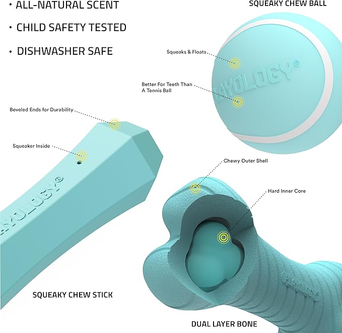 - MEET THE JUMBO SAMPLER BOX: Designed with a mix of our most-loved toys, including the Squeaky Chew Ball, Squeaky Chew Stick, and Dual Layer Bone, this Peanut Buttter sampler pack is perfect for keeping jumbo breed dogs entertained through every type of play. With squeaky sounds, engaging textures, and embedded all-natural Peanut Butter scent, it keeps your pup busy and engaged in playtime up to 7x longer than unscented toys.