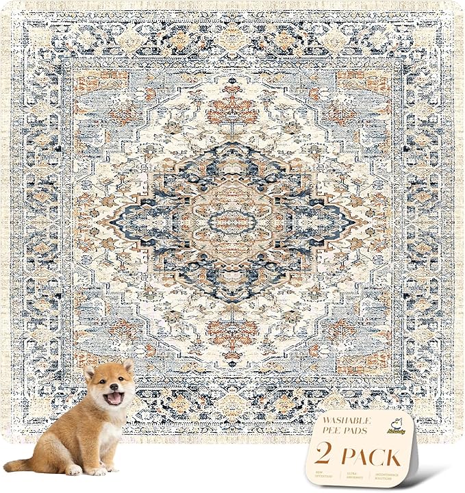 nunubaby 2PACK Washable Pee Pads for Dogs, Stylish, Non-Slip and Leak-Proof Pee Pads. Reusable Potty Pads for Dogs for Crates and Floors.(Beige/Multi, 72" x72" )