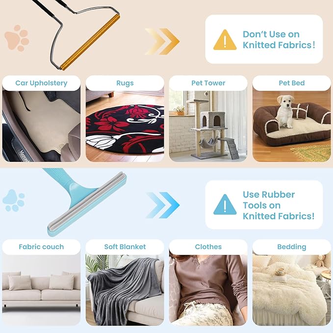 - Metal Pet Hair Remover for Couch, Carpet & Car — Designed for deep cleaning, the metal edge lifts stubborn pet hair from sofas, rugs, and car interiors without damaging fabrics—perfect for removing embedded fur after grooming.