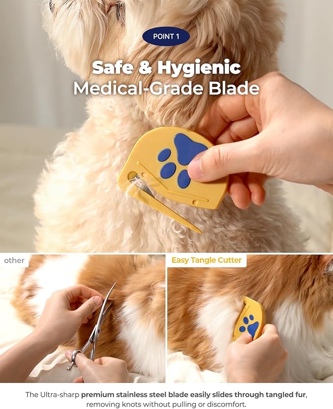 - EFFORTLESS MAT & KNOT REMOVAL: Say goodbye to stubborn tangles! Our precision steel blade effortlessly cuts through mats and knots, making grooming quick and painless for your furry friend.