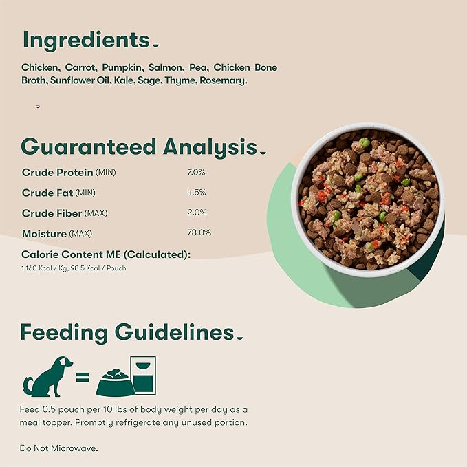 - ALL NATURAL INGREDIENTS: Crafted with premium, all-natural ingredients, including moist and meaty salmon, chicken, carrots, pumpkin, and bone broth. Better wet dog food starts with better ingredients.