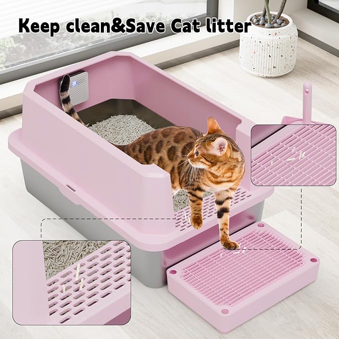 - Durable 304 Stainless Steel Tray: The rust-proof 304 stainless steel base with GRS certification resists odors and stains, and will not absorb urine smells like plastic. Easy to clean and built to last, it’s a reliable choice that supports a healthy home for multi-cat families. (30-Day Free Return)