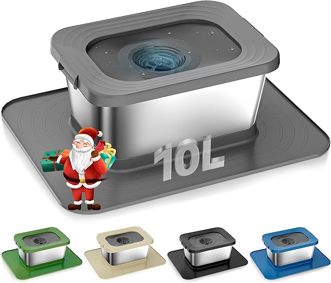 10L No Spill Dog Water Bowl, 2.6 Gal Stainless Steel No Splash Large Dog Water Bowl with Non-Slip Silicone Mat, Spill Proof Slow Drinking Pet Bowls for Messy Drinkers Indoor/Outdoor Use Gray