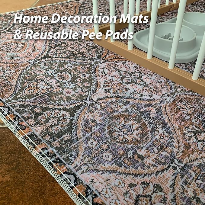 nunubaby Washable Pee Pads for Dogs, Stylish, Non-Slip and Leak-Proof Pee Pads. Reusable Potty Pads for Dogs for Crates and Floors.(Brown/Multi, 48" x48")