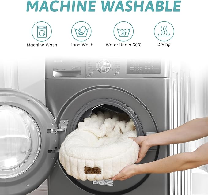- Hooded Cave for Security: Donut-shaped cave design with walls offers head/neck support for curled sleeping. Note: The blanket will not stand up naturally, you need to cover your pet with the blanket or you need to train it.
