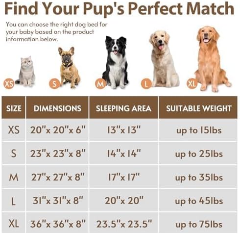 - Choose the Perfect Size for Your Pet: We recommend referencing the weight limit and sleeping style: 20-Inch: Pets up to 15 lbs (Kittens, Chihuahuas, Yorkies); 23-Inch: Pets up to 25 lbs (Pugs, Frenchies); 27-Inch: Pets up to 35 lbs (Beagles, Spaniels); 31-Inch: Pets up to 45 lbs (Bulldogs, Corgis); 36-Inch: Pets up to 75 lbs (Labradors, Golden Retrievers). Pro Tip: When in doubt or if your pet loves to stretch out, always size up for extra comfort