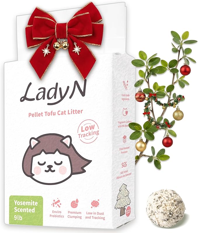 Lady N Pellet Tofu Cat Litter Yosemite Woody Scent, Strong Clumping, Ultra Absorbent, Dust-Free Low Tracking, Water-Soluble, Natural Ingredients, Enviro-Probiotic for Odor Control 9lb