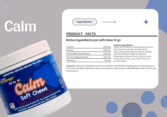 - Supports nervous system function for the anxious or hyperactive dogs during fireworks, thunder, lightning, motion sickness, etc....