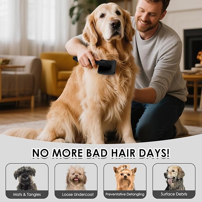 Large Slicker Brush for Dogs – 3pc Grooming Kit with Undercoat Rake & Comb, Deshedding Pin Brush for Mats & Shedding on Long-Haired & Double-Coated Dogs, Cats, Poodles & Goldendoodle, Black