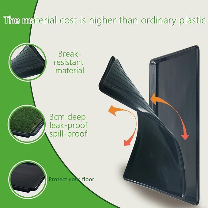 - GREAT TOOL FOR DOG POTTY TRAINING:Most dogs like to wee on the lawn, so we designed a realistic Hemmed Edge faux grass pads with tray to help your Furry Friend to use it,and the drain hole runs through entire the roll of grass to make sure it is quickly to absorb urine.However, Your lovely pet may need some patient training,If your dog wouldn’t go near it, please leave some urine on the lawn, which will help him/her get used.