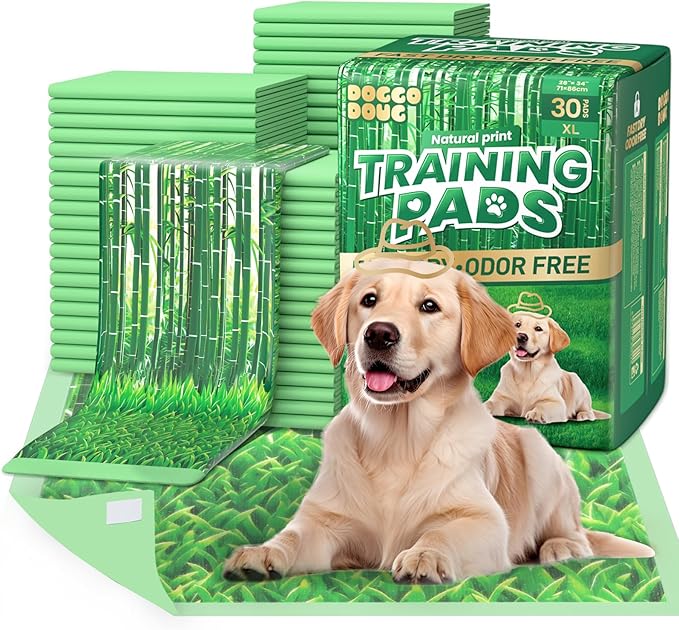 - 🦴【Attractant&Pattern Design】Infused with a pheromone attractant to simplify potty training ,Adorned with a bamboo leaf pattern in green,puppy pads enhance visual charm while providing added comfort for your pet and elegance to your space