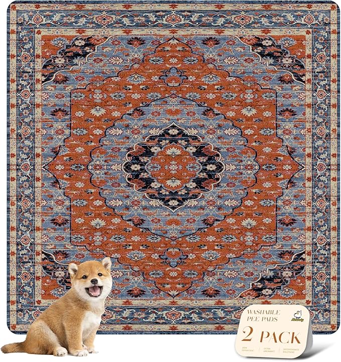 nunubaby Washable Pee Pads for Dogs, Stylish, Non-Slip and Leak-Proof Pee Pads. Reusable Potty Pads for Dogs for Crates and Floors.(Red/Floral, 54" x54" )