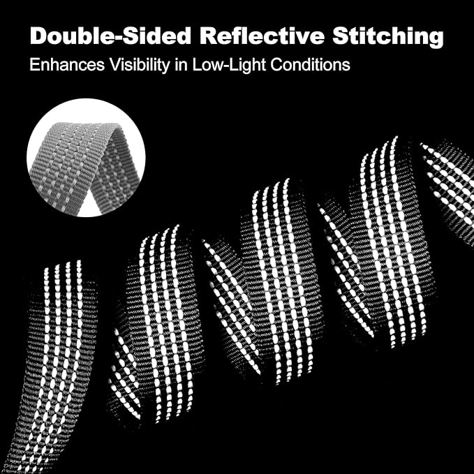 - Double-Sided Reflective Nylon Webbing. Crafted from reinforced nylon, the leash includes reflective stitching on both sides, helping improve visibility during early morning or nighttime use. A practical choice for safety-conscious pet owners