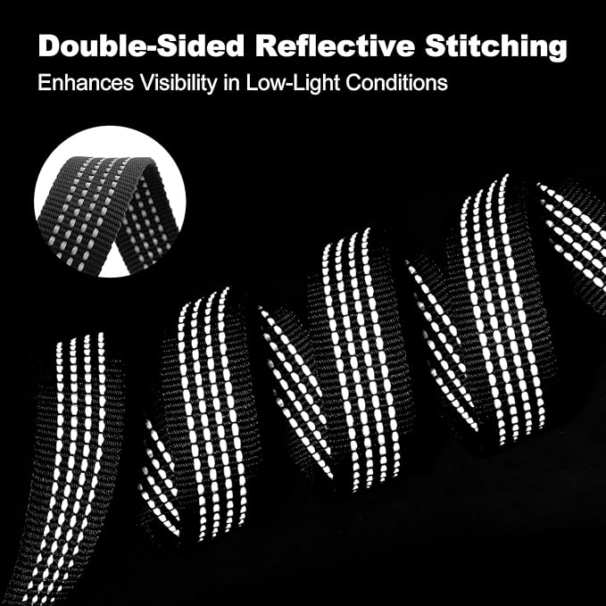 - Double-Sided Reflective Nylon Webbing. Crafted from reinforced nylon, the leash includes reflective stitching on both sides, helping improve visibility during early morning or nighttime use. A practical choice for safety-conscious pet owners