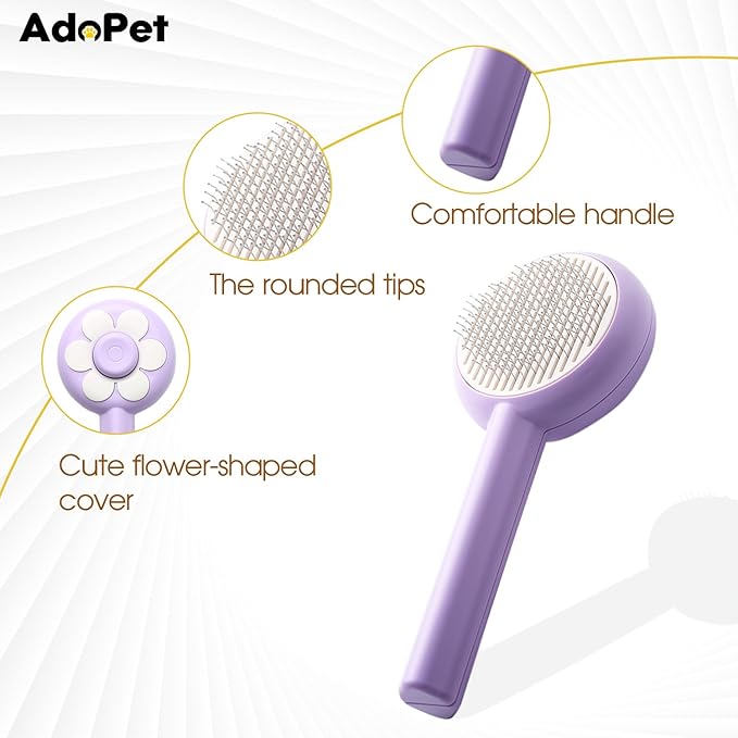 Self-Cleaning Pet Grooming Brush Soft Silicone Bristles, Flower Design for Cats and Dogs – Easy to Use & Gentle Care (Purple)