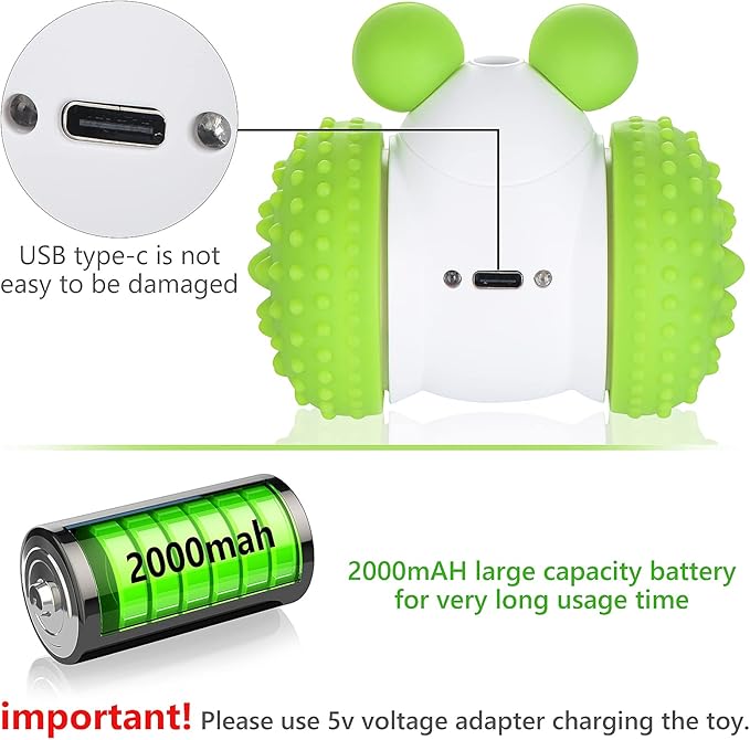 - 【Rechargeable Cat Toy with Long Battery Life】Equipped with a powerful 2000mAh battery and USB Type-C charging, this rechargeable cat toy supports up to 4 hours of continuous play on a single charge. No more frequent battery swaps—just reliable, long-lasting entertainment.