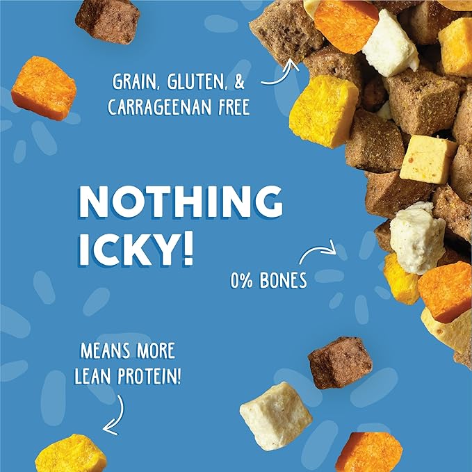 - Weruva Dog Freeze Dried, Steak Frites Dinner, 1oz Bag. Gently cooked with 76% sirloin tip, beef, beef organs, whole egg, egg white, and fish oil. No bone, just real beef and real flavor