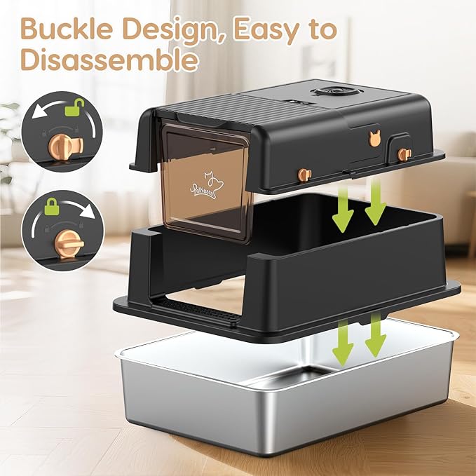 - 【PalNests Service】High-quality stainless steel litter box lasts 5+ years without warping – rust-proof, scratch-resistant, durable. Includes scoop, mat, Litter Companion, and manual. Contact us anytime for issues.