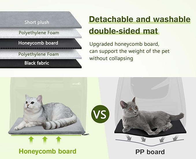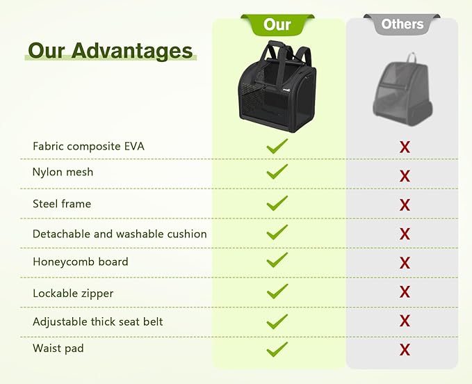 - 【 Sturdy & Safety 】: The cat backpack carrier has sturdy steel wire frames on the left and right sides, as well as fiber rods on the top and bottom, which can effectively prevent collapse, allowing for maximum stability and shape retention. The double-sided pad bottom features a removable and washable cover. It also contains pearl cotton and honeycomb boards in the middle, which optimize stability and enhance comfort. The built-in adjustable safety rope and locked zippers prevent your pet from escaping.