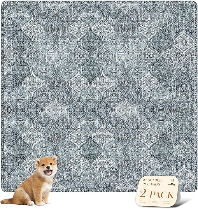 nunubaby 2PACK Washable Pee Pads for Dogs, Stylish, Non-Slip and Leak-Proof Pee Pads. Reusable Potty Pads for Dogs for Crates and Floors.(Blue/Multi, 72" x72")