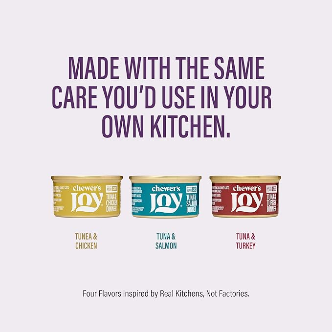 Chewer's Joy Wet Cat Food Variety Pack – 3 Flavors: Tuna & Salmon, Chicken & Turkey – Natural Pâté – High Protein – Grain Free – Complete & Balanced Nutrition – 12 Cans (3 oz)