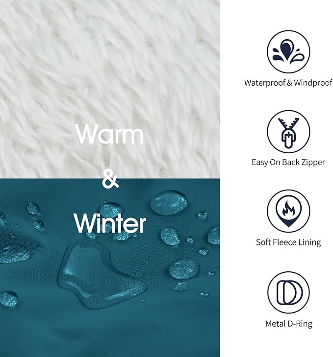 - Dog Winter Coat with Harness:Warm dog coat and dog harness 2 in 1 design,no need extra dog vest harness.Straps are adjustable for a comfortable fit, strengthened seams and sturdy D-ring can withstand strong pulling force from your puppy
