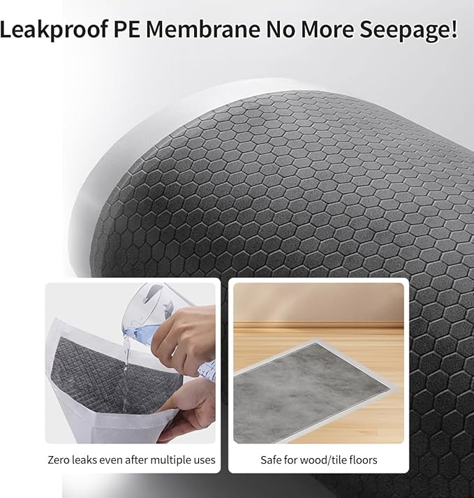 - 6-Layer Super Absorbent Design Our pee pads feature a 6-layer high-density construction, including hydrophilic nonwoven fabric, bamboo charcoal water-absorbing paper, fluff pulp, SAP, absorbent paper, and PE film. This multi-layer design dramatically improves liquid absorption, compared to regular 4-5 layer pads.
